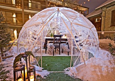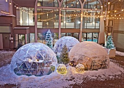 Our Winterfest Domes & Cabins are private outdoor experiences nestled in The Commons, offering a cozy, heated space to enjoy cocktails and winter warmers under the glow of the season. A great spot to sip while the fireworks are in the vista.