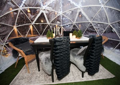 Each Dome or Cabin comfortably seats up to 6 guests. For larger parties, groups would need to be divided yet can be reserved side-by-side.